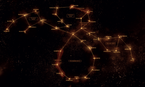 The route starts and ends in Altai. It passes round the Quadrant of the Pillar, Odacon and the Miran Chain, before rounding the Dabaran Circle along the Caph Link to Melik, past Dabaran and Kua to traverse Altai again before turning to Nharmada and the Algol Route. From there the route returns to Altai to start the entire journey again. It has been known that some are born, live their lives and die before the Awal and Aqdam swarms have made even one single circuit.